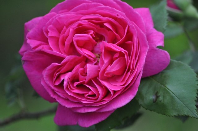 Huge, fuchsia, cup-shaped flowers; the petals eventually turning back prettily at the edges. Powerful and delicious fragrance. A large, vigorous shrub with open growth. Garcon, 1841.