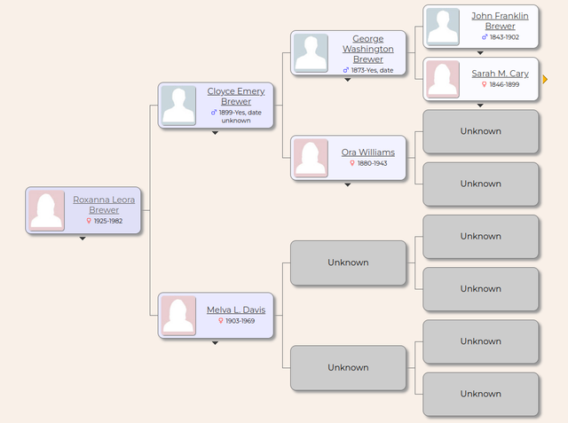 Genealogy: Roxanna Leora Brewer (1925-1982)