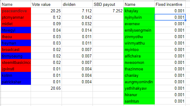Some users are not given. Some are bots and some are my partners. The users shown in red will not get any incentive. The blue one will get according to their vote value.