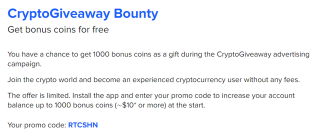 Follow the link below to download CryptoGiveaway Bounty or use the promo code RTCSHN to get an extra bonus from me: https://cryptogiveaway.info/welcome/landing?promo=RTCSHN