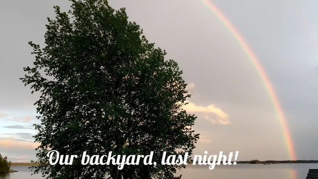 #godsgift #atthelake #canada #backyard #lake #beautiful #rainbow #lastnight #endofrainbow #share2steem