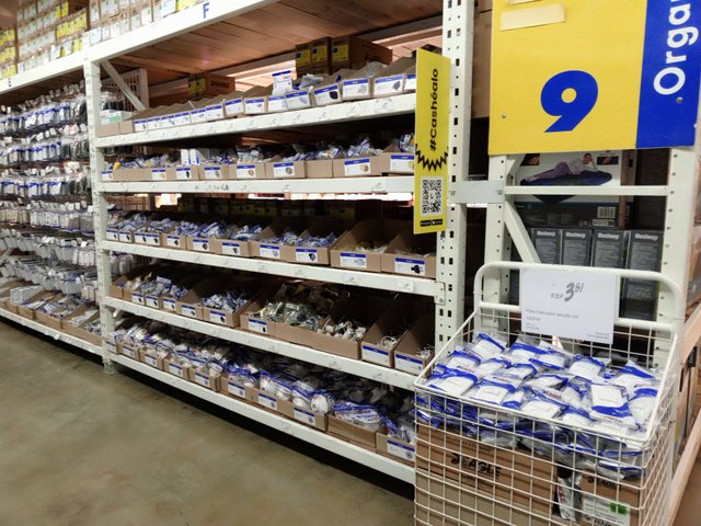 Además de materiales de ferretería, pude observar que también ofrecen algunos productos de higiene, un espacio para productos y alimentos de mascotas, y en la zona de caja para cancelar, dulces y golosinas.