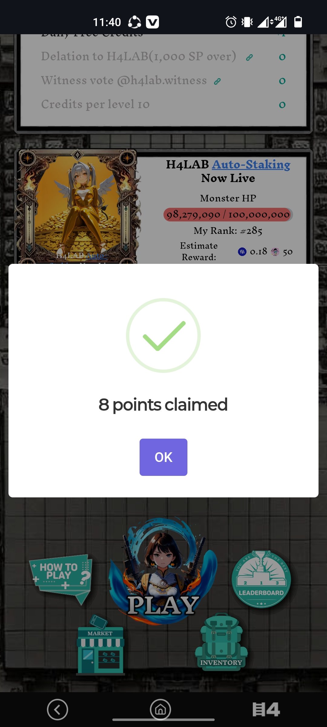 I clicked the play button, after clicking, my earned cards appeared and after clicking Attack, the monster suffered 154 points of damage. After finishing the game, I got 8 Harry points, then I claimed the points. I enjoyed playing the game very much. A wonderful game.