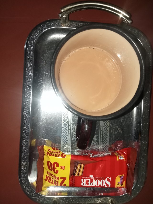 Then my mother was making breakfast for the whole family and I also helped her because everyone had to go to the office in the morning, my brothers had to go over and my father also had to take medicine, so they had to have breakfast early. Then I did that shortly after and after doing that I got mine ready and I didn't feel like eating my paratha egg myself. I made tea for myself and along with that I ordered biscuits from the market and I had breakfast with that.