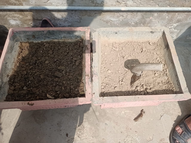 Because these pots had been lying empty for a long time, nothing had been planted in them, due to which their soil had become quite hard, so our first task is to soften this barren soil, because only if we soften it, the seeds we will sow will sprout quickly. Therefore, first of all, I thought of softening these preparations. Now, you can see in the pictures below that the topsoil of all the beds looks hard.