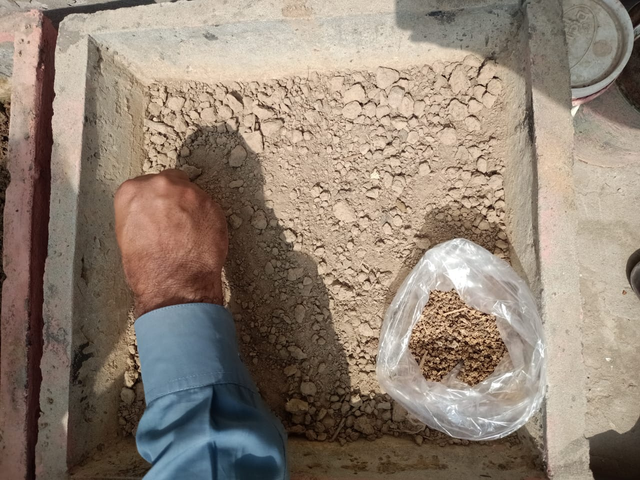 After sowing the spinach seeds, I went to the other bed. In this bed, I was going to plant fenugreek. I had already softened the soil, but it was slightly wet. It is wet, so it is not a problem because now we will not water it later. The seeds need a little moisture to ripen their roots, so there is already moisture inside them. Soso, we will just plant the seeds in it with the help of pinchers and will not add water to it.