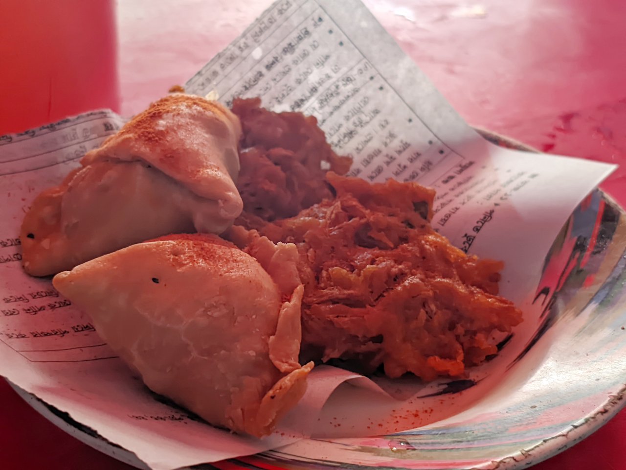 I left the salon around 1:10 pm. I was very hungry at that time, and the scene of the afternoon market was getting more uncomfortable due to the scorching sun. So I went to a hotel in the market for some food. When I went there, I saw that they had prepared hot singara and piazi. After that, I ordered two piazi and two singers.