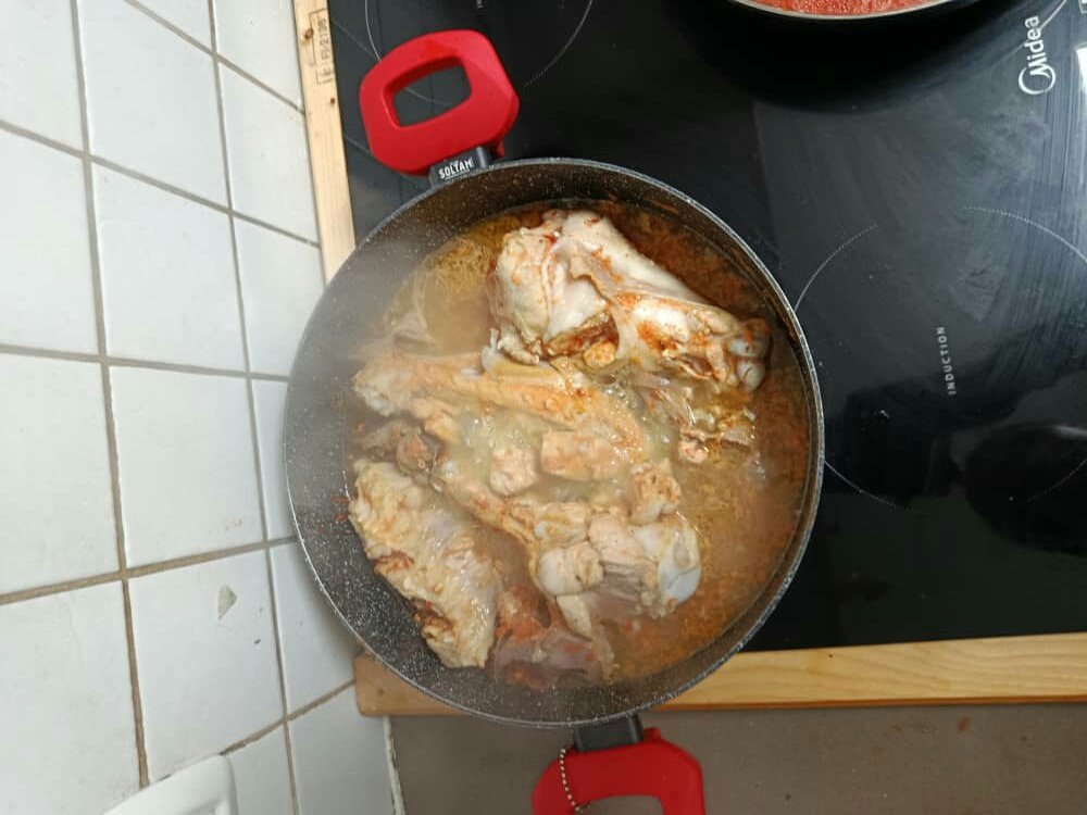 I keep telling you, I am one person that loves cooking and if I wasn't a footballer, I would've chased a career in the food industry and make a name for myself. Anyways, cum Christmas, I will be cooking for people and I pray it goes well. I went straight up to my kitchen immediately I woke up and here I was when I was steaming the meat I wanted to use. Okay, I used chicken for the meat.