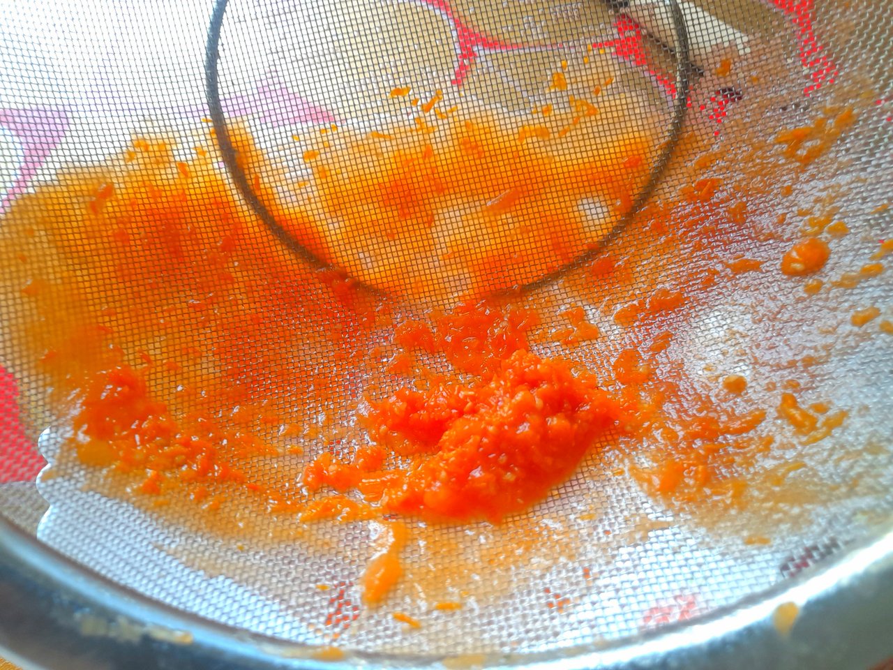 In the last step, I strained the ketchup using a cloth. This separated the hard particles like cloves, cinnamon, and basil leaves from the ketchup.