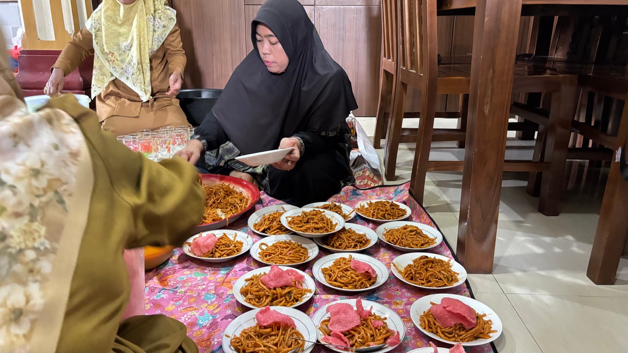 Usai berbincang kami disuguhi minuman dan cemilan mie. Kami menikmatinya bersama, diiringi canda tawa. Usai makan kami pamit pulang dan mendoakan kesehatan sahabat kami agar kembali bisa beraktivitas lagi di sekolah.