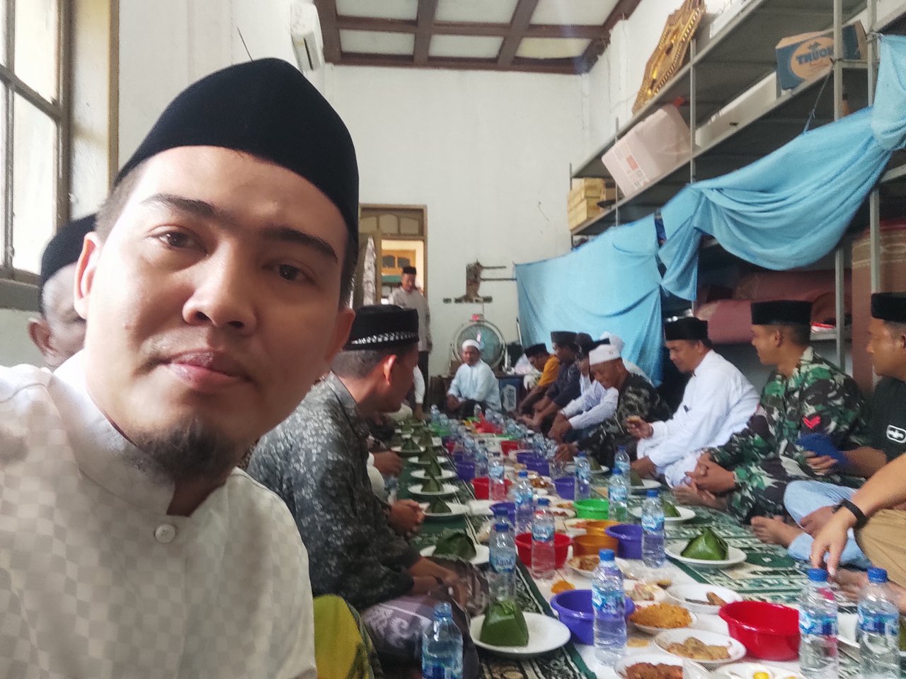 Sedangkan kami para undangan semuanya berada di dalam masjid melaksanakan doa bersama dan dzikir juga dalam rangka perayaan Maulid, saya bersama undangan lainnya para tokoh masyarakat duduk di depan mimbar masjid, saya menyempatkan diri berswafoto mendokumentasikan kemeriahan Maulid hari ini.