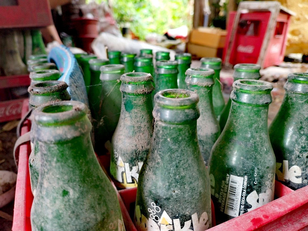 First, I removed those cases slowly and swept the areas. Those broken bottles are also kept away safe from my Daughter, I put it in an empty sacks and tied with rope before putting at the bin.