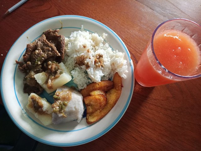 Llegamos a casa casi a la 1 de la tarde, freí unas tajadas, calenté la carne y a sentarnos a comer bien sabroso. Dejé todo limpio y le di un baño a mi hija. La dormí y se ha ido la luz, le puse su ventilador, solo por 20 minutos por que se levantó.