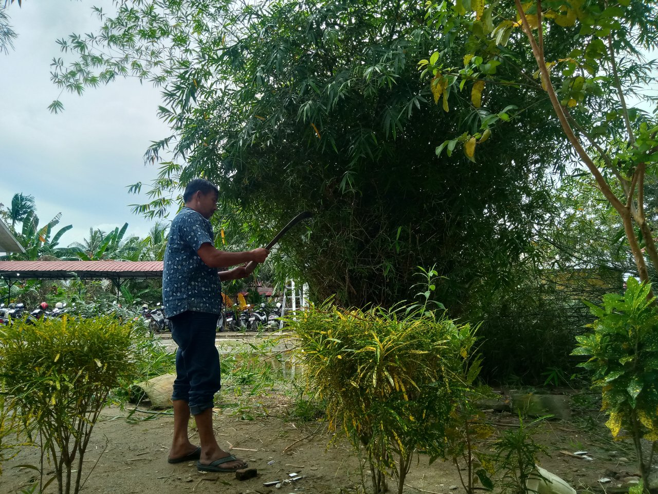 Bambu ini terdapat di halaman sekolah saya, hari ini penjaga sekolah membersihkan halaman dan merapikan bambu yang sudah terlihat penuh dan semak. Dari hasil pembersihan ini, beliau menemukan berbagai macam bambu yang unik dan terlihat menarik dengan berbagai macam bentuk.