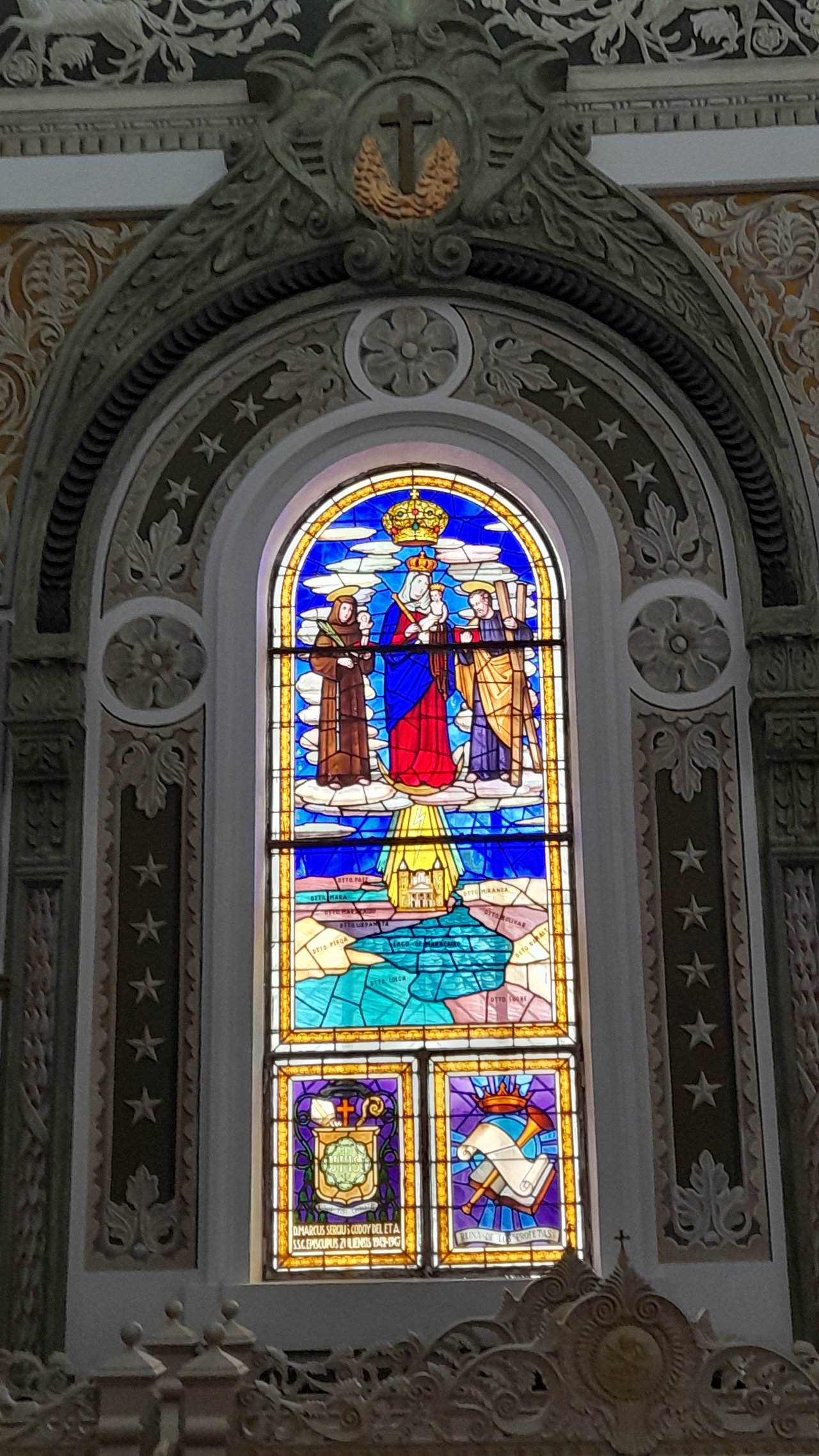 This stained-glass window, one of the church's most beautiful, depicts the story of the venerated Virgin Mary, which is reflected in the lyrics of many gaitas composed for her.