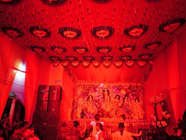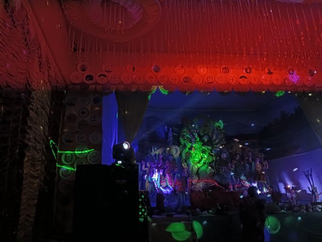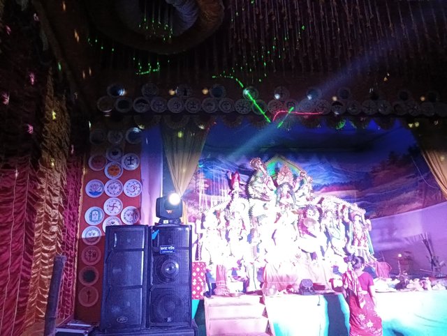 A puja celebration had already started in our area and we went to see the puja. Within a short while we entered the puja mandap and noticed that there were different types of lighting and sound system songs being played here. Anyway, after spending quite some time here, I had already captured a few pictures through my mobile phone. Due to the excessive lighting, I spent some time here and then immediately I bowed to Durga Maa and came out. Within a short while I left to come to another puja mandap.