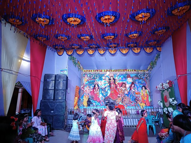 In this way, quite some time was spent, then I went to another puja mandap where beautiful idols were decorated. However, I spent a lot of time here too. In this way, I was busy in the mandap and watching the puja until about 11:00 pm. The night was getting dark and we had come a long way to watch the puja. So I left for home. It was almost twelve o'clock when I reached home.