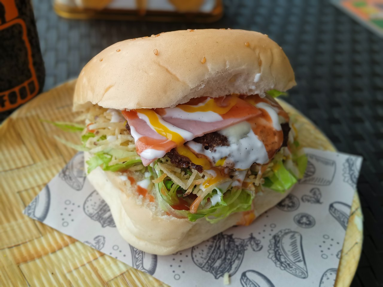 Saludé a la señora y me dijo que me iba a preparar la hamburguesa sabrosa y full por 340bs, esperamos un ratico porque no había más clientes y cuando llegó la hamburguesa no dude en sacarle fotos.