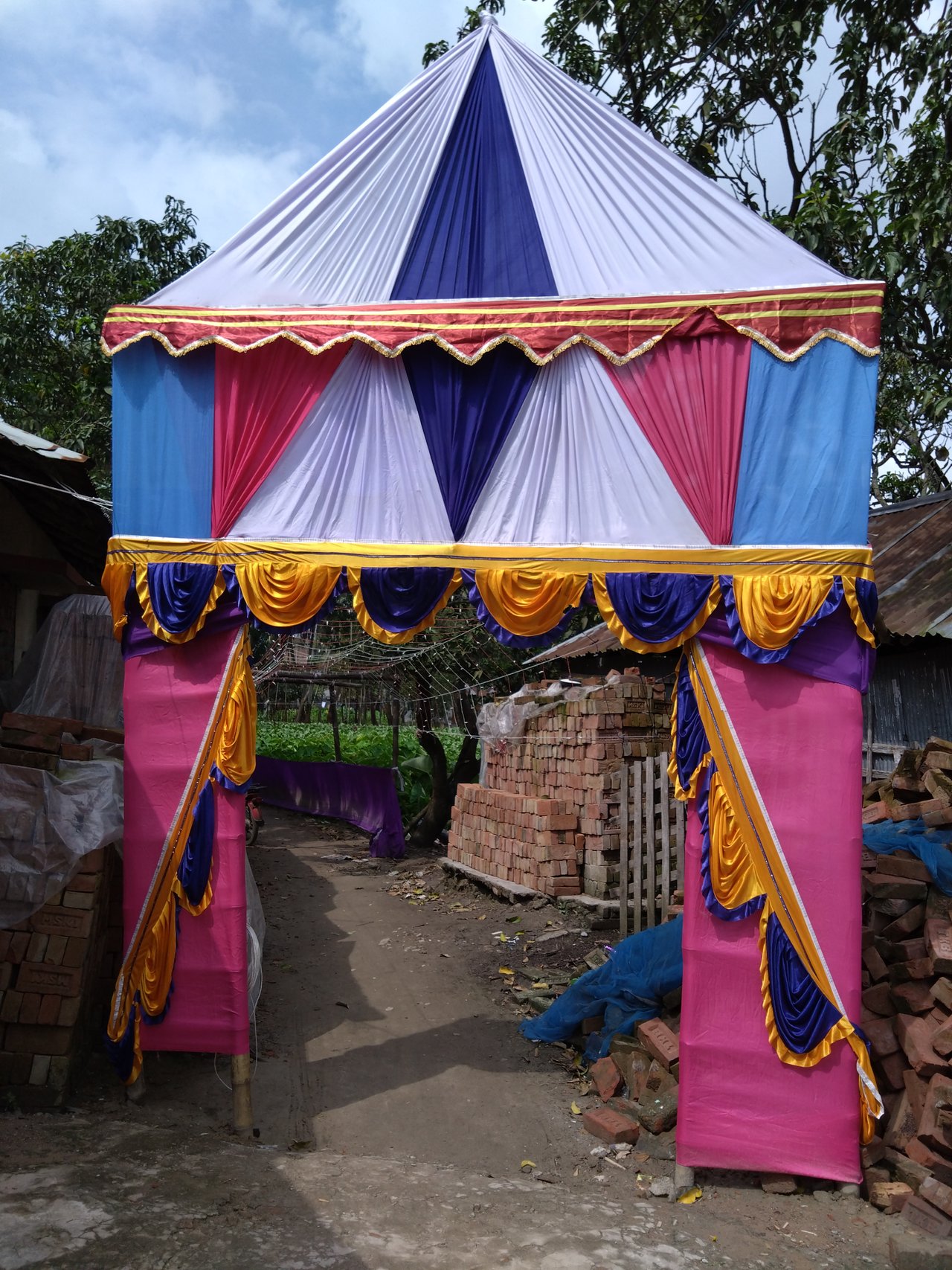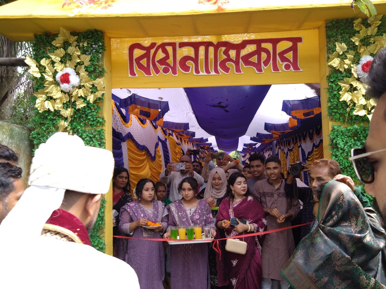 I went home on Thursday night. On Friday, I offered Jumma prayers in the area. Then, I came home, got dressed and got ready for the wedding party. I went to my friend's house in a van from my house. It takes about 20 minutes to go from our house to my friend's house. Their house is in Kumarkhali town. And the house of the girl I'm getting married to is also in Kumarkhali town. I don't have to go far. When I got home, I saw my other friends coming too. Then I started looking for the groom and his friend. The wedding house was quite a gate, decorated with lighting.