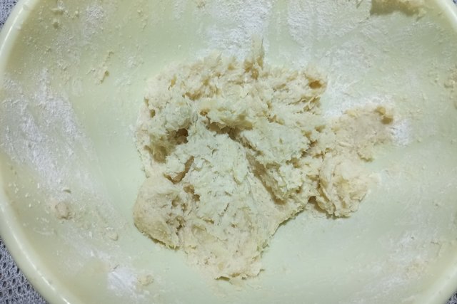 Agregamos las cucharadas de maizena y el huevo, mezclamos hasta obtener una masa suave.