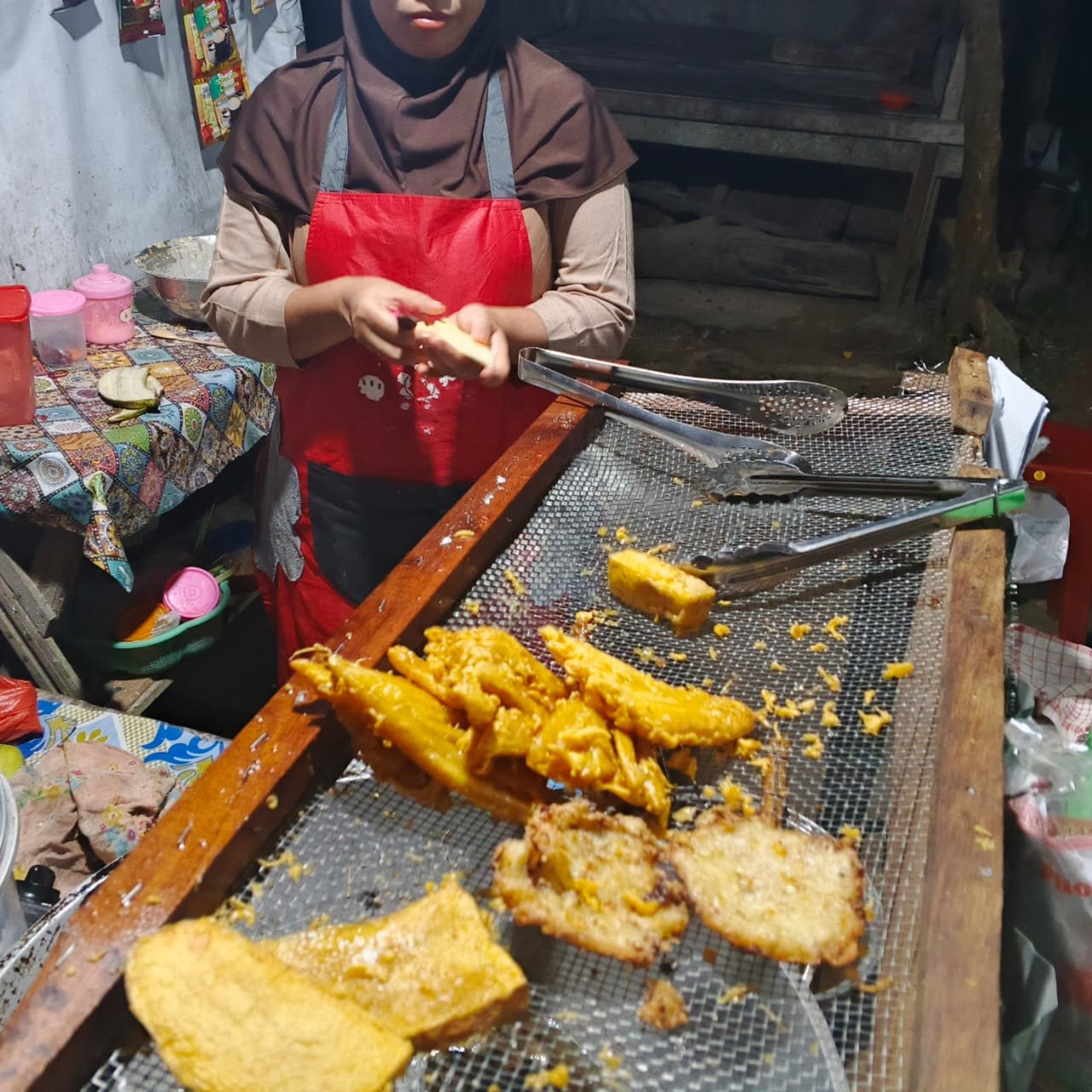 Selesai membuka kede segera saya membuat tepung adonan untuk gorengan, dan saya iris pisang untuk di jadikan pisang goreng, saya juga menjual beberapa macam gorengan, seperti ubi jalar, tahu, sosis, dan juga bakwan.