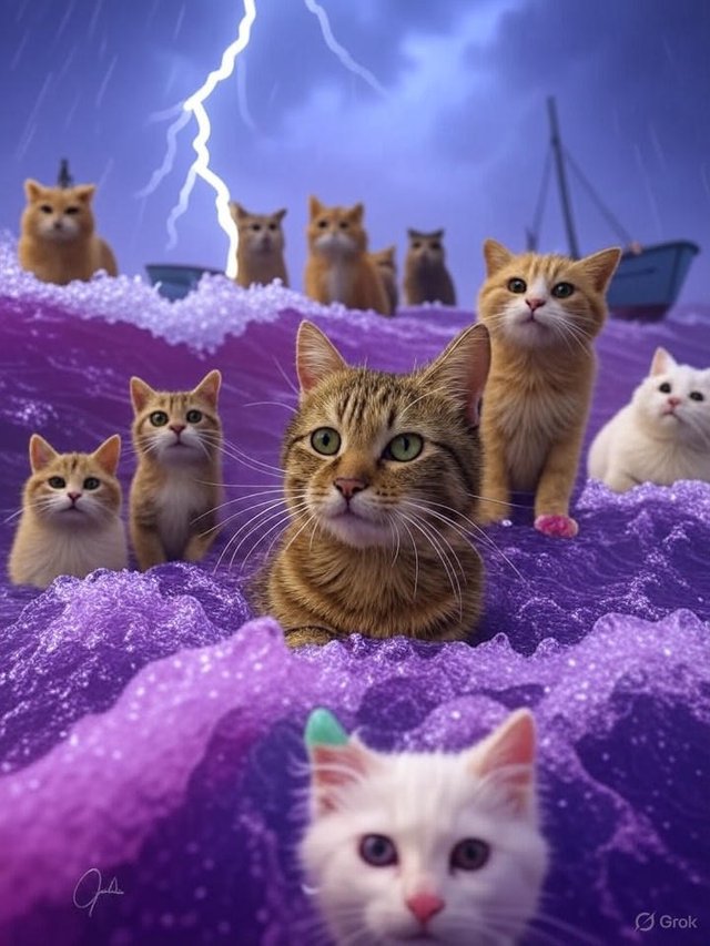 보라색 바다에서 수영하는 고양이들mia.fobos (67)in zzan • 5 days ago 노을빛에 물든 바다는 깊은 보라색으로 빛나고 있었다. 그 속에서 여러 마리 고양이들이 파도를 가르며 헤엄쳤다. 보라색 물결은 마치 꿈속의 바다처럼 신비로웠다. 고양이들의 눈동자에도 같은 빛이 스며들었다. 그들은 서로 장난치듯 물보라를 튀겼다. 달빛이 수면 위에 은빛 길을 만들었다. 고양이들은 그 길을 따라 유영했다. 멀리서 고요한 섬의 그림자가 다가오고 있었다. 보라색 바다는 끝없이 고양이들을 품어주었다. #zzan #kr #krsuccess #steem #steemexclusive #steemzzang #nft #upvu #cur8