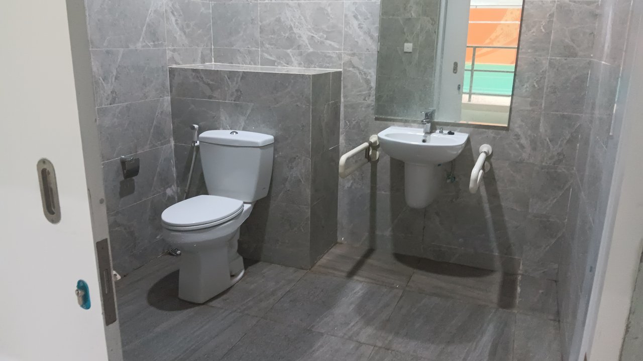 Dalam kondisi darurat juga, gedung ini punya pintu keluar dari sisi kanan gedung. Saya tidak lihat apakah di sisi kiri juga ada pintu darurat. Saya alpa singgah ke sana. Namun, jika dalam kondisi darurat masih bisa dipakai juga empat pintu utama di bagian belakang yang di sisi kiri-kananya berdiri pendingin ruangan.