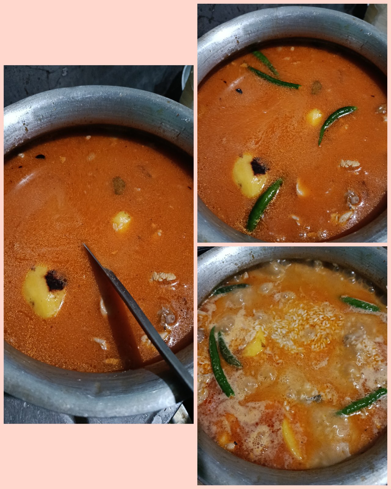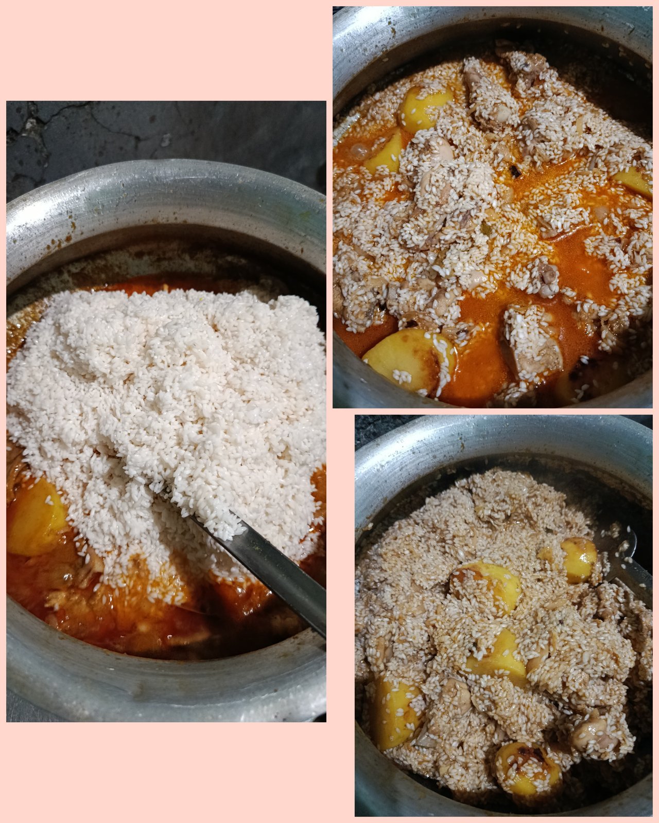 • Then, when the rice is well , add enough water to it.Leave some of the chilies in it.Then you have to put all the things together.