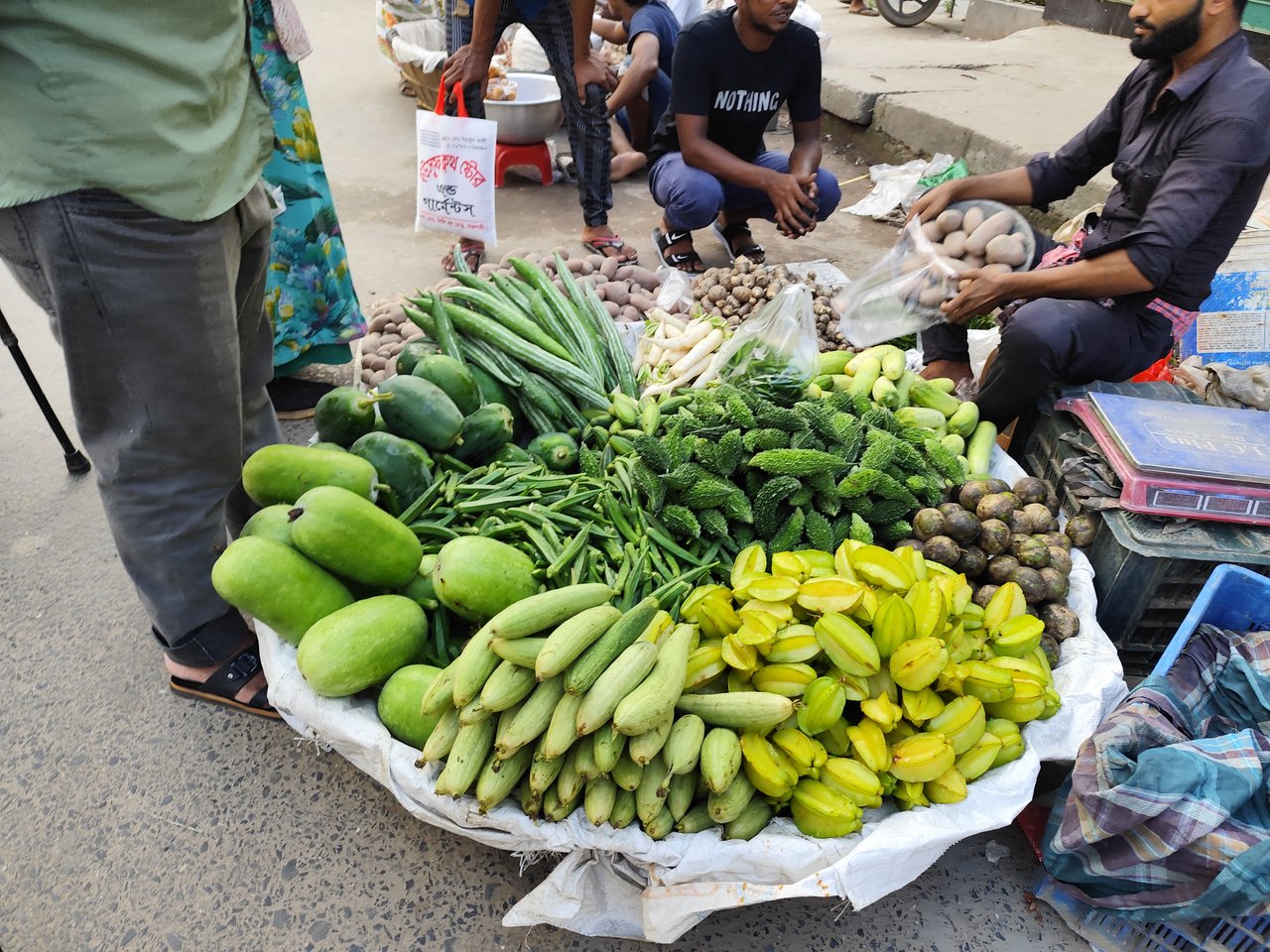 Two hours later, when my son was out of school, I entered the Court Station Market with my son on my way home. Since the Court Station Market is near my house, I do my shopping from this market. I entered the market to buy some vegetables, fish, and fruits. First, I bought fresh vegetables from the roadside vegetable vendor. Then I bought fresh and crisp Rui fish. After buying vegetables and fish, I went to the fruit shop.