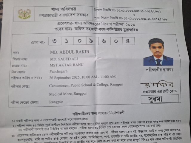 Today I have to go to Rangpur early in the morning to give a written exam for a job. Today I woke up at dawn, took a bath first and went to prayer. After finishing the prayer, I returned home and got dressed. I took the admit card and pen for the exam. We left home at 6 am and took the bus to Suihari, which has arranged a bus only for the examinees today. We went there and got on the bus and my friend was also coming there. Our bus left Dinajpur for Rangpur at 6.30. Our bus will have extra passengers and the bus will not stop anywhere on the route, so the journey will be very good. Most of us slept the entire time on the bus.