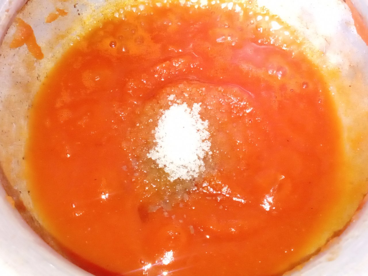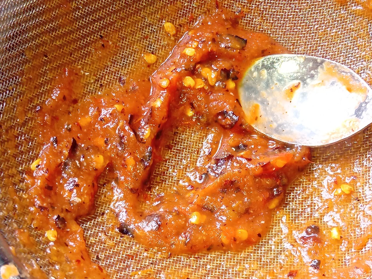Since I used dried chili powder, some of it remained in the ketchup.To make the ketchup even fresher, I strained it again to separate the dried chili pieces.This is how the tomato ketchup was ready.