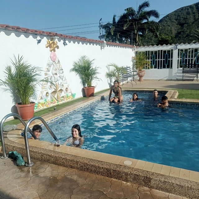 Cómo pueden ver aquí no eran tanto los niños a los que la niña invito, pero pasaron un momento agradable y más con el sol que estaba bastante fuerte e intenso el calor era desesperante que lo que provocaba era meterse uno a bañar en la piscina también!!😂