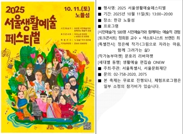 예술과 생활이 하나로, ‘2025 서울생활예술페스티벌’ 11일 노들섬서 개막