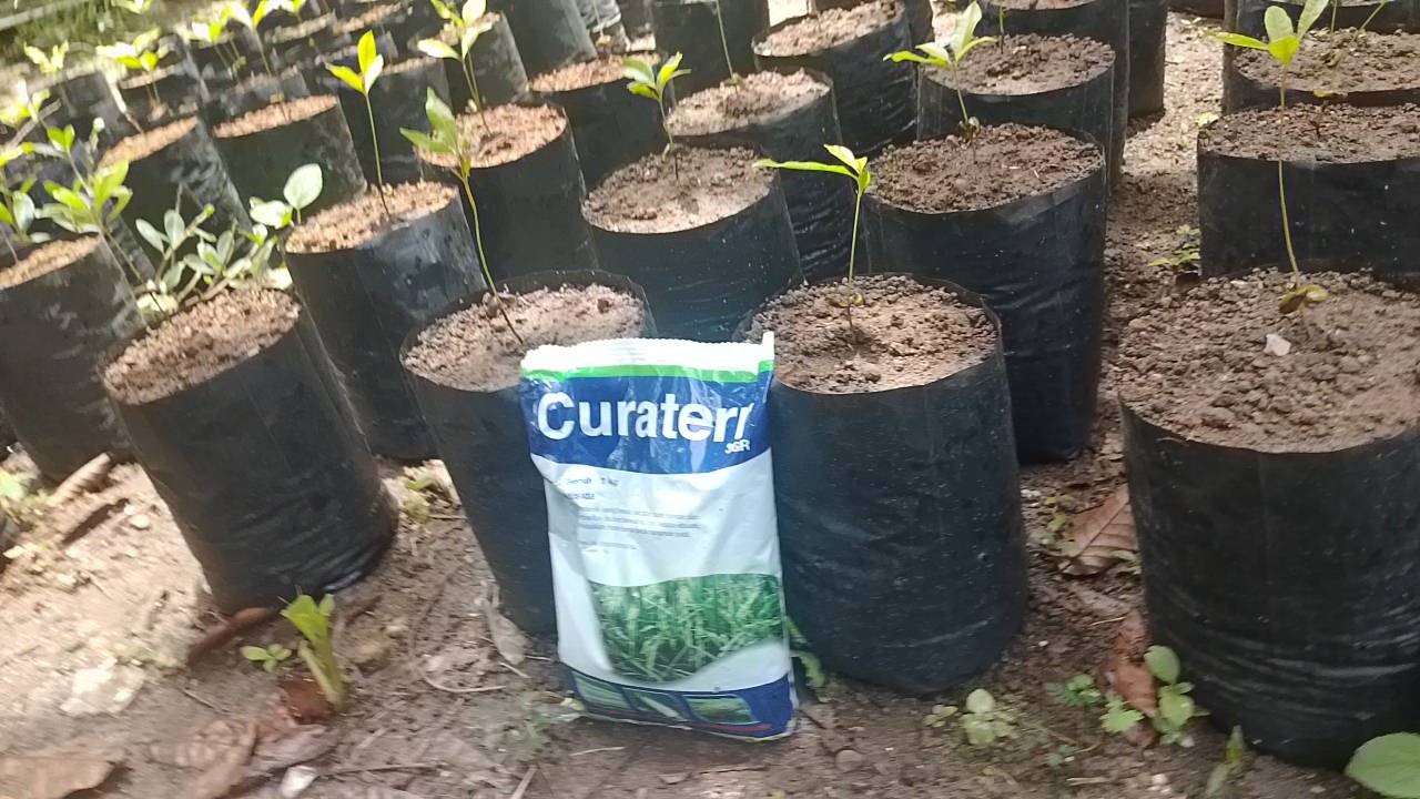 Today, I'll show you the type of leaf insecticide I use to maintain clove growth in my nursery. This insecticide has a contact system, meaning that when it's sprinkled under the tree, it deters certain pests from approaching the plants.