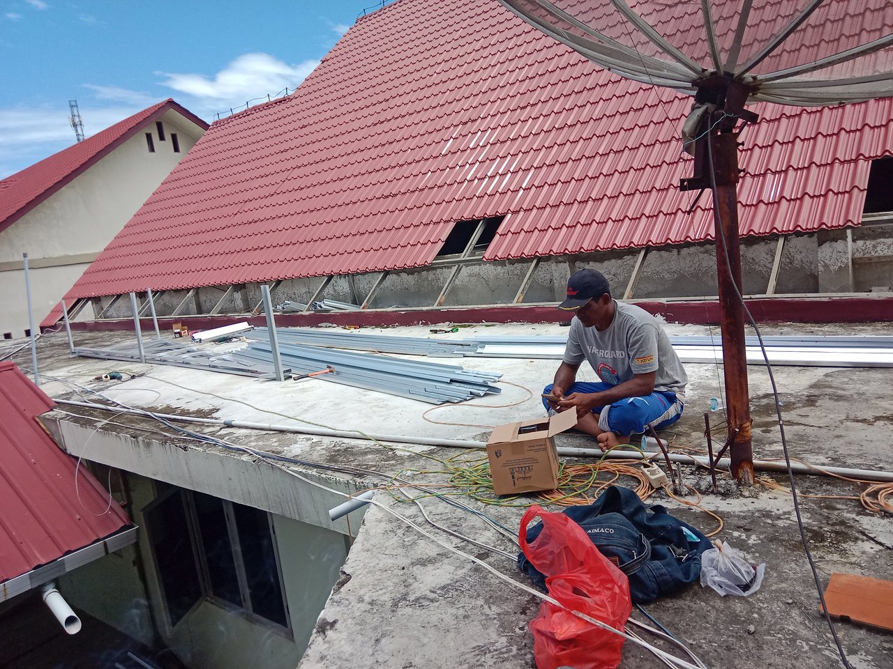 A las 14:00, volvimos al trabajo hasta las 16:00, hora de comer. Hicimos un descanso de 15 minutos, luego retomamos el trabajo hasta las 16:00 y luego regresamos a nuestros respectivos pueblos. Hoy solo terminamos de instalar los listones del techo, tarea que continuaremos mañana.