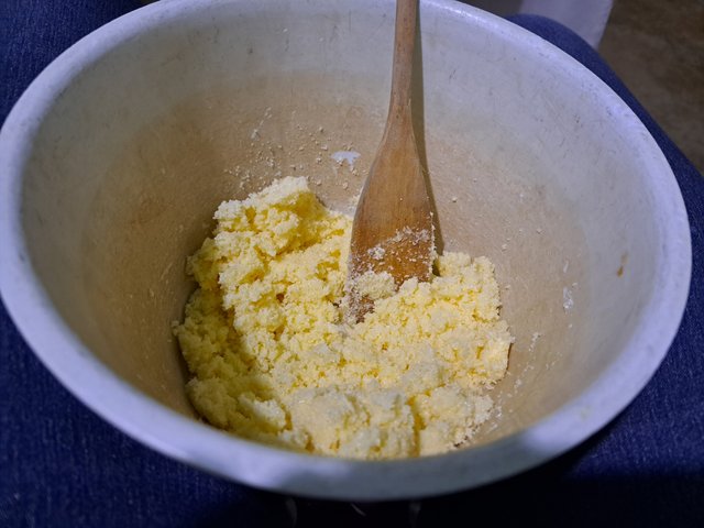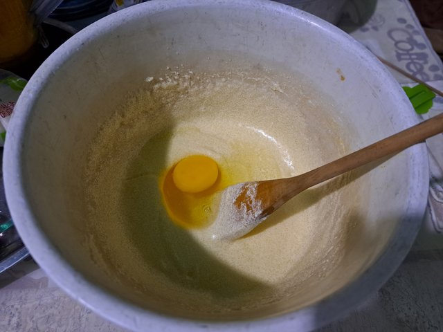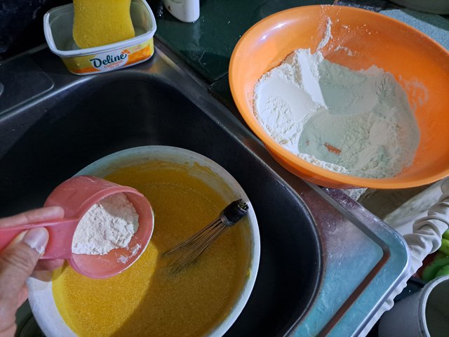 Y de allí vamos incorporando la harina de trigo poco a poco.