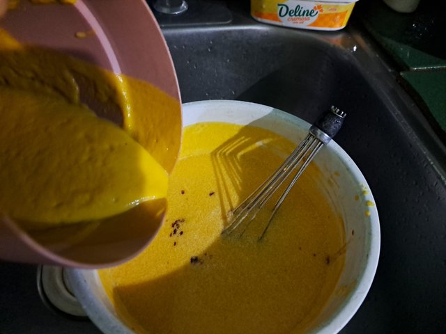Luego agregamos los huevos uno por uno y seguimos batiendo por unos minutos mas.