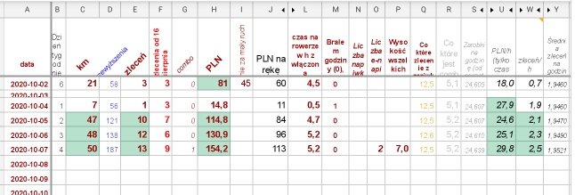 Wyszedł rekord. Aż 9 zleceń "grubych", czyli lepiej płatnych. W końcu wpadł pierwszy październikowy napiwek (5+2 zł). Ruch był też duży i stały. Do tego ciągle byłem w okolicach Wrzeszcza a to oznacza właśnie szansę na rekordowe obroty.