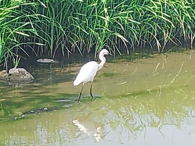 En medio del camino me encontré a una garza de pico negro (desconozco su nombre real), no sabía si se estaba refrescando, o estaba pescando. Las lluvias ha acelerado el crecimiento de maleza, y la acumulación de pozos de agua. En plena noche se escuchan a los sapos cantar en una sola voz.