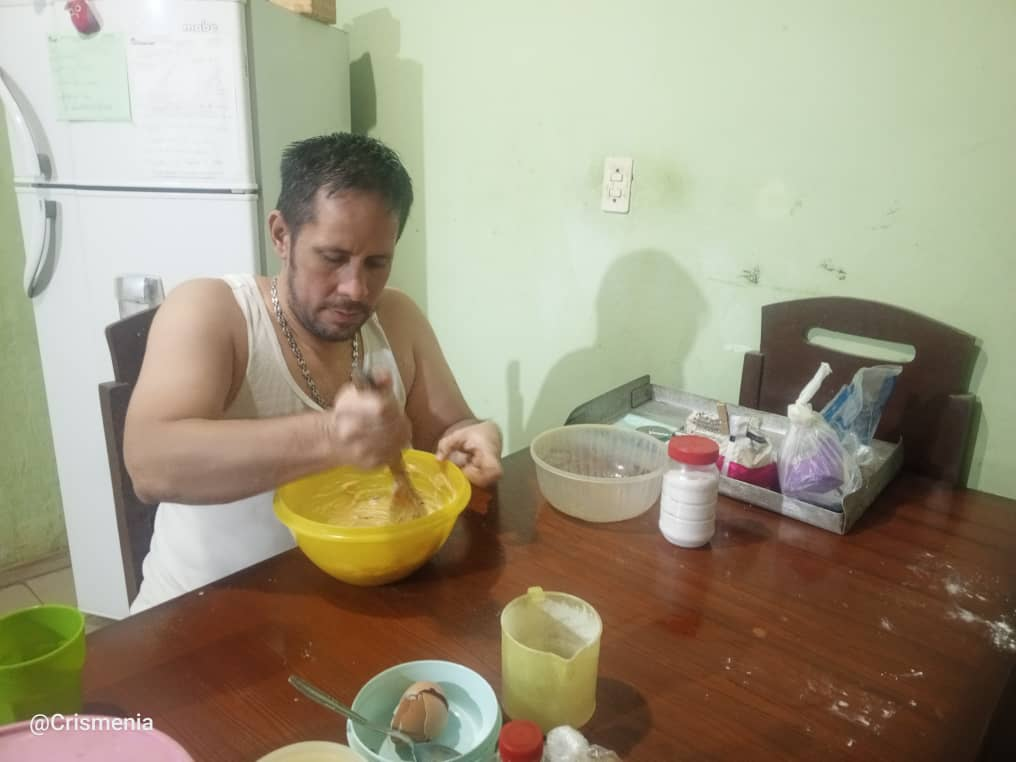 Ya que estaba despierta, me coloqué un poco de vinagre rebajado con agua en el cuero cabelludo, lo dejé unos minutos y luego me lo lavé, seguidamente, me puse una mascarilla capilar que me encanta y mientra la dejaba unos minutos en el cabello me puse a hacer una masa para galletas, bueno, estaba de asistente...!