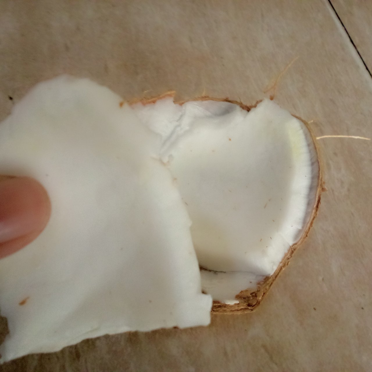 Papá me dió coco, el cuál fue mí merienda del día, el coco es una excelente fruta contiene potasio, calcio y magnesio un alimento excelente para el organismo.