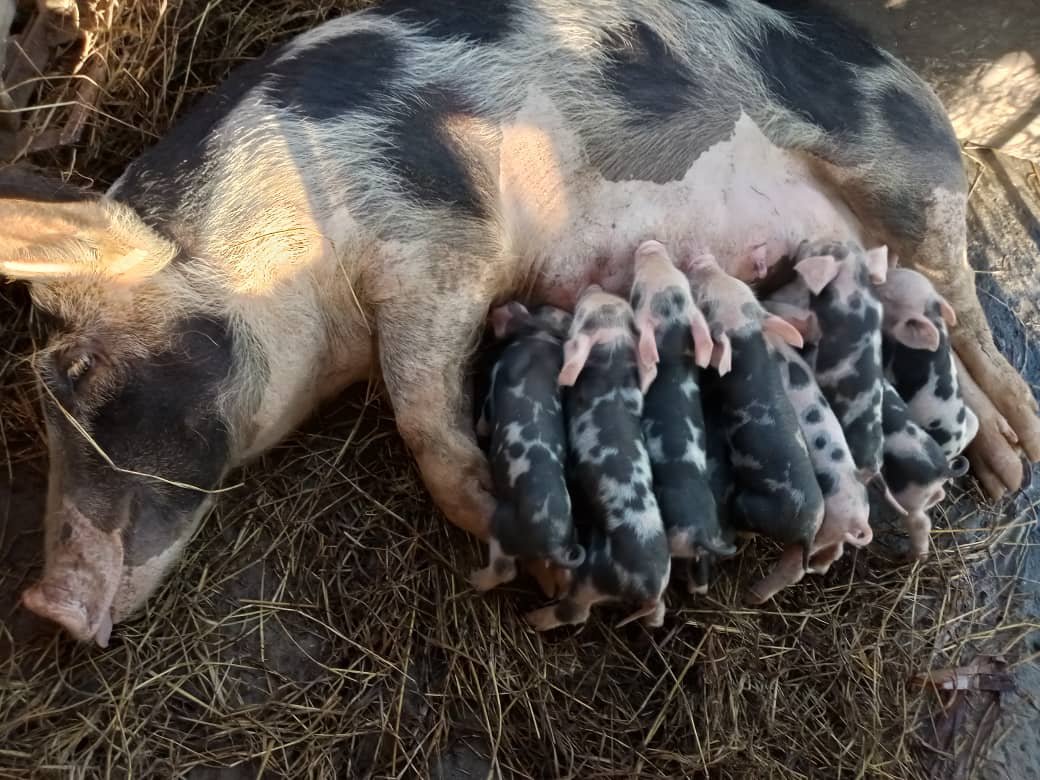 No paso mucho tiempo que lleve al hermano Pedro a su casa y hacer una diligencia, el pastor nos dejo la moto para hacer ese recorrido. Regrese temprano para alimentar a los cerdos y hacer el aseo a esta preciosa cochina recién dada a luz de 9 cerditos.