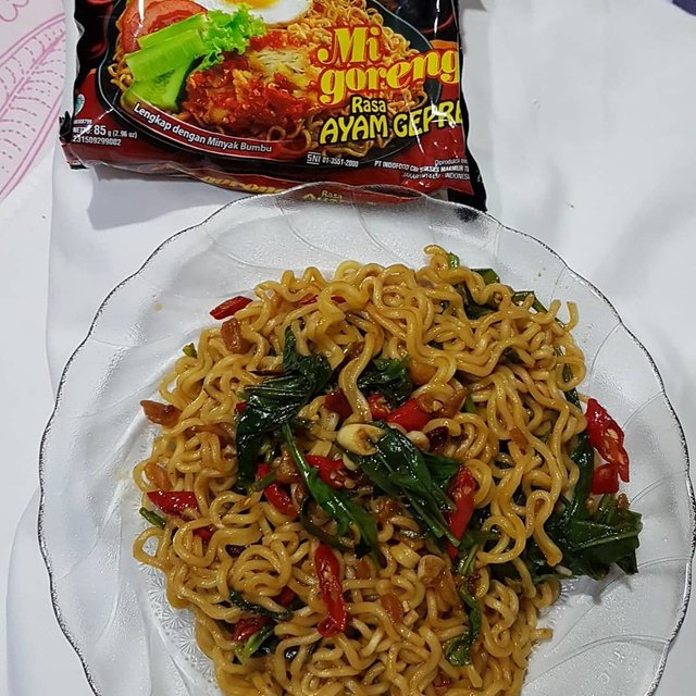 Pic 2. Instant Noodle with stirfry ginseng leaves for last night's dinner
