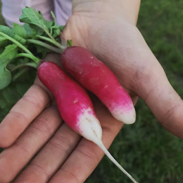 French breakfast radishes! They are so good the 5 year old begs for more! #homesteading #gardening #newmorningacres #farmlife #share2steem #knowyourfarmer #texasgrown