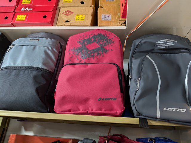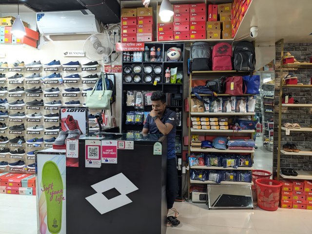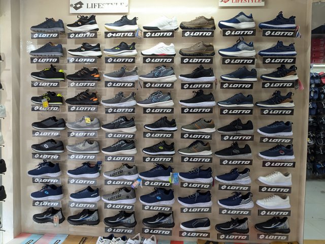 Lotto sells shoes and clothes as well as belts, shoe polish, bags. They have also recently added some food items here, namely dates and cashew nuts. Their bags are made of animal skin, so they are much stronger and more expensive. Comparatively, these products sell less. They also sell water bottles and footballs. Which are imported from Italy. Lotto does multi-business at the same place.