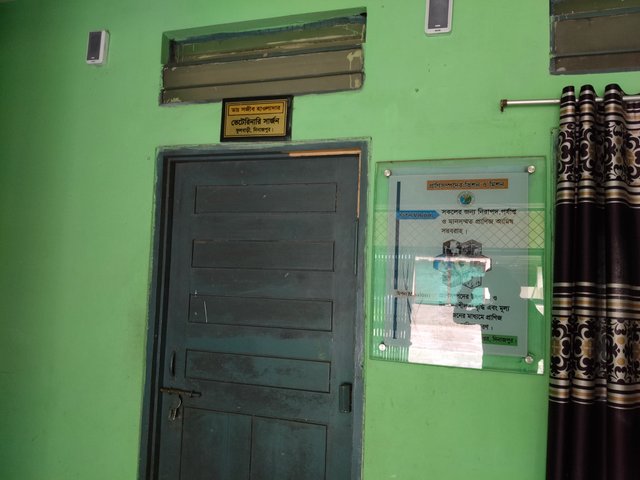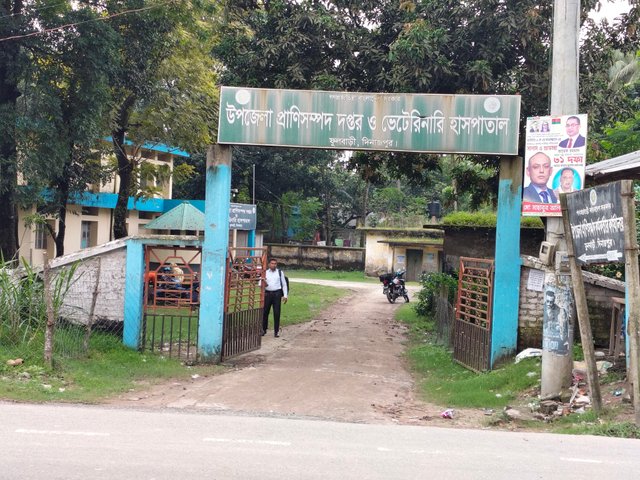 The entrance is made on the side of the highway. A small board has been installed here to identify the hospital. This has made it easier for people to enter. This gate is not open all day. Because like a human hospital, this hospital does not need to be open all the time but is open if any individual problem arises. So people can come to the hospital at any time and get their livestock treated.
