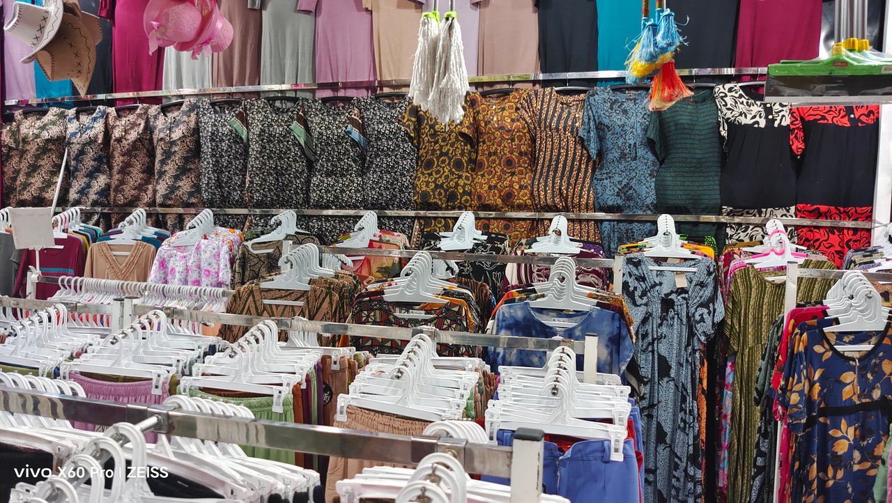 Begitu kita masuk ke dalam toko yang memang menjual barang dengan harga sangat terjangkau. Kita dapat melihat pakaian yang di gantung baik di rak-rak yang tersusun rapi maupun di dinding toko. Yang membuat para pengunjung merasa tertarik untuk singgah di toko yang menjual berbagai jenis pakaian maupun aksesoris. Bahkan untuk jenis mainan juga tersedia di toko yang menempati dua pintu toko ini.
