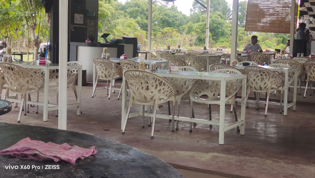 Ada beberapa gerai makanan yang tersedia di tempat ini. Namun pada saat kami singgah, belum ada yang buka. Mungkin mereka mempersiapkan terlebih dahulu, terutama untuk jenis bakso, yang memang sangat disukai oleh segala kalangan. Ternyata pada saat kami pulang melewati tempat ini, semua gerai makanan sudah tersedia. Kami tidak singgah lagi, apalagi hari Minggu, tentunya banyak orang yang datang bersama keluarga untuk sekadar menikmati minuman maupun makanan di cafe ini.