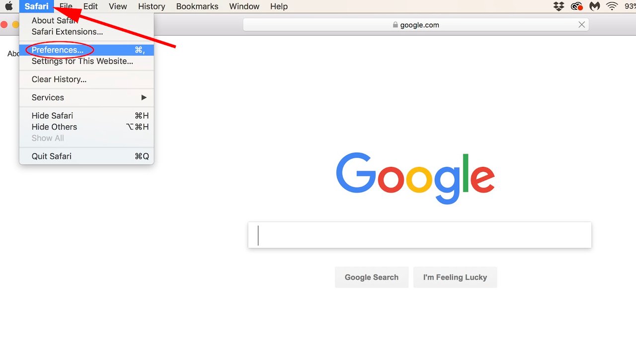 1. Open your Safari browser, click “Safari” on the navigation bar, and select “Preferences … ”.