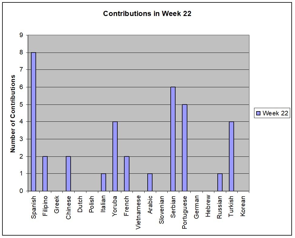 Therefore, the statistics and graphs will not show the contributions of the individual translators but will display the 19 language teams instead.